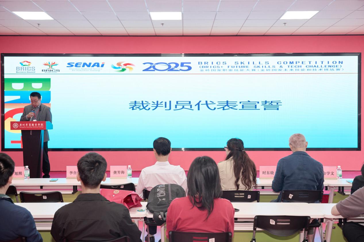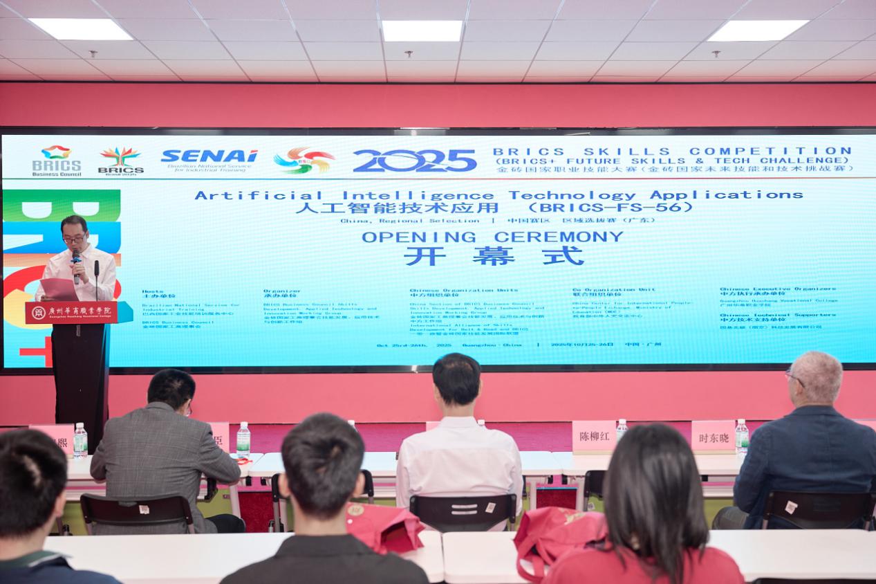 秋高气爽,战鼓催征。10月25日至26日,2025金砖国家职业技能大赛——人工智能技术应用赛项中国区选拔赛(广东)在我校隆重举行,本次赛事吸引了来自广东省内的37支参赛队伍同台竞技,共赴一场智慧与技能的较量。