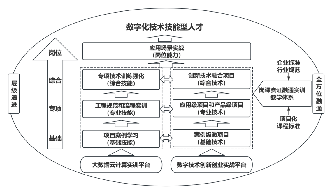 该案例由人工智能技术学院尹旭熙老师牵头,联合龚芳海、赖伟科等十余位教师共同完成,系统总结了我院自2019年以来在计算机类专业教学改革中的创新实践与成果。案例直面数字经济背景下人才培养与产业需求脱节的核心问题,构建了“技术赋能、平台支撑、项目驱动”的立体化培养体系,通过校企共建平台、四级项目化课程、递进式实战教学等举措,有效提升了学生的数字化技术应用与创新能力。