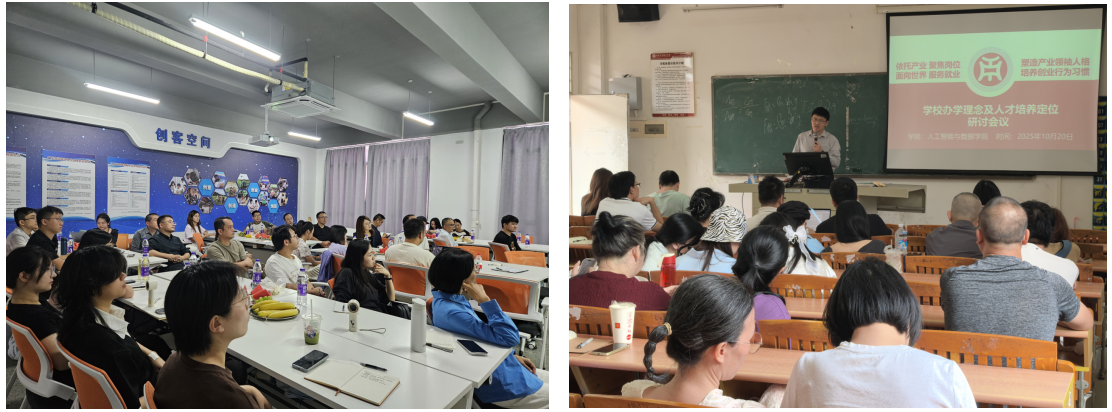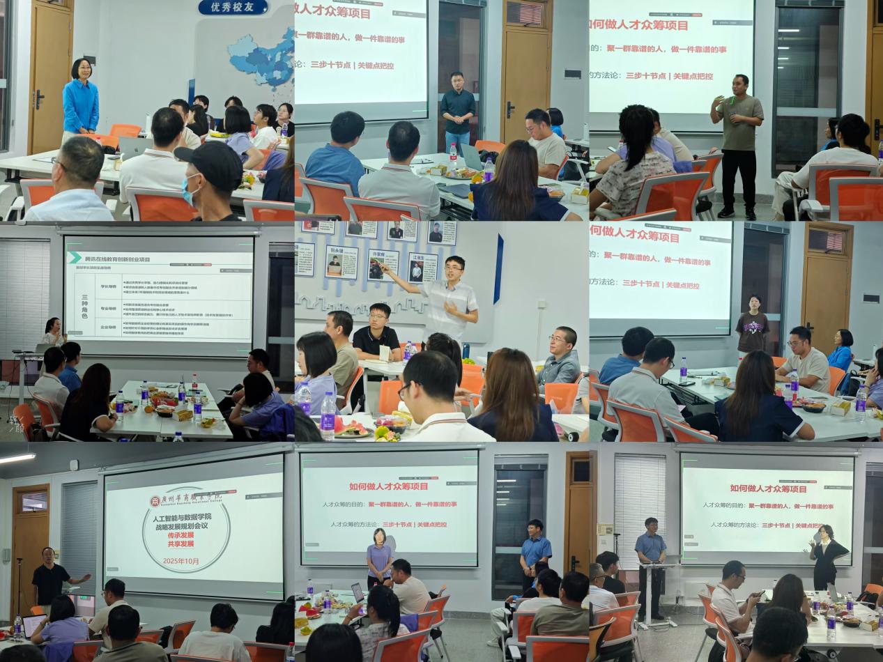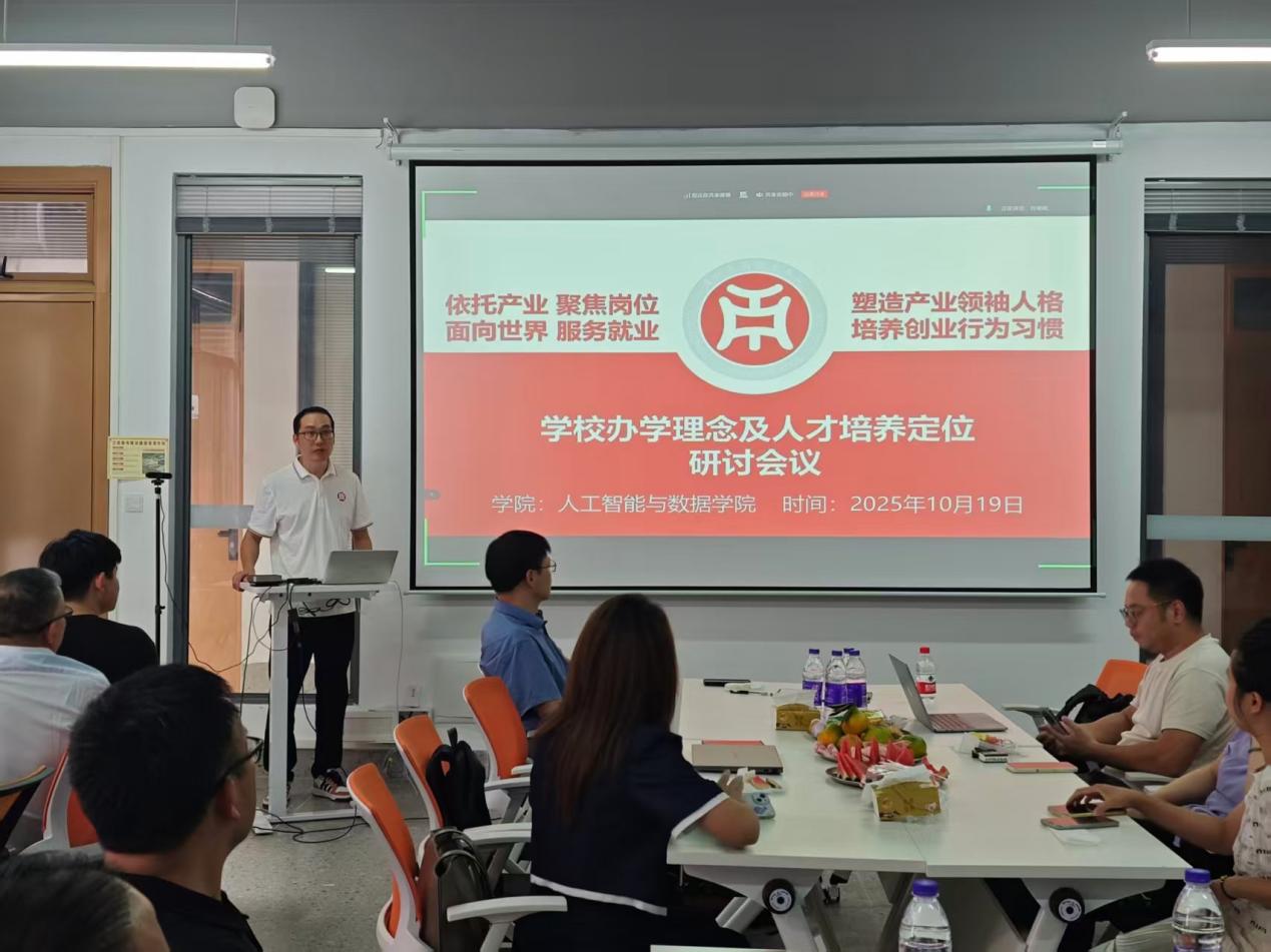 为贯彻落实学校“依托产业,聚焦岗位,面向世界,服务就业”的办学理念,塑造产业领袖人格,培养创业行为习惯,10月19日和10月20日,广州华商职业学院人工智能与数据学院分别在江门校区和广州校区成功举办了“学校办学理念及人才培养定位研讨会”。学院全体教职工参加会议。会议由副院长尹旭熙主持,院长龚芳海教授作专题汇报。