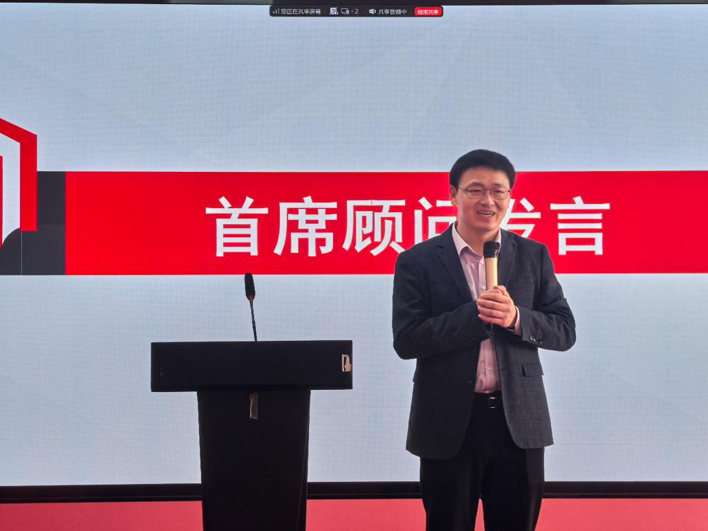 首席顾问龚芳海教授作总结发言。他首先向全院教职工的辛勤付出致以诚挚谢意,充分肯定了新班子带领学院呈现的良好发展态势,同时提及主持工作尹旭熙副院长的工作已获得校领导的高度认可。结合自身在学院的深耕经历,龚教授对团队成功包揽省计算机学会教育成果全等级奖项、实现跨越式发展等亮眼成绩倍感自豪。龚教授进一步强调了教育成果奖对学院集体建设与教师个人成长的双重重要性,并分享了“成果是策划出来的,团队是设计出来的”独到理念。他以17名学生通过产教融合订单班成功赴企业实习的实例,直观印证了学院人才培养模式的实践成效;同时明确提出未来冲击省级一等奖及国家级教育成果奖的攻坚目标,着重指出该目标对学院升本工作的关键支撑作用,并建议通过整合外部院校优质资源,联合申报高等级奖项,为成果突破注入更强动力。