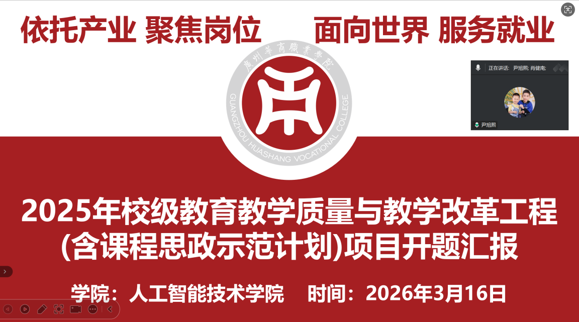 为深入推进教育教学质量提升,深化职业教育教学改革,精准落实校级教育教学质量与教学改革工程各项任务,3月16日,广州华商职业学院人工智能技术学院隆重召开2025年校级教育教学质量与教学改革工程开题论证会议。会议特邀广州城市职业学院龚芳海教授、广东科贸职业学院李文彪副教授及广东岭南职业技术学院陈景发三位专家组成开题专家组,对学院立项的14项校级教改课题进行专业论证与指导,全部课题负责人及团队教师代表参加会议。