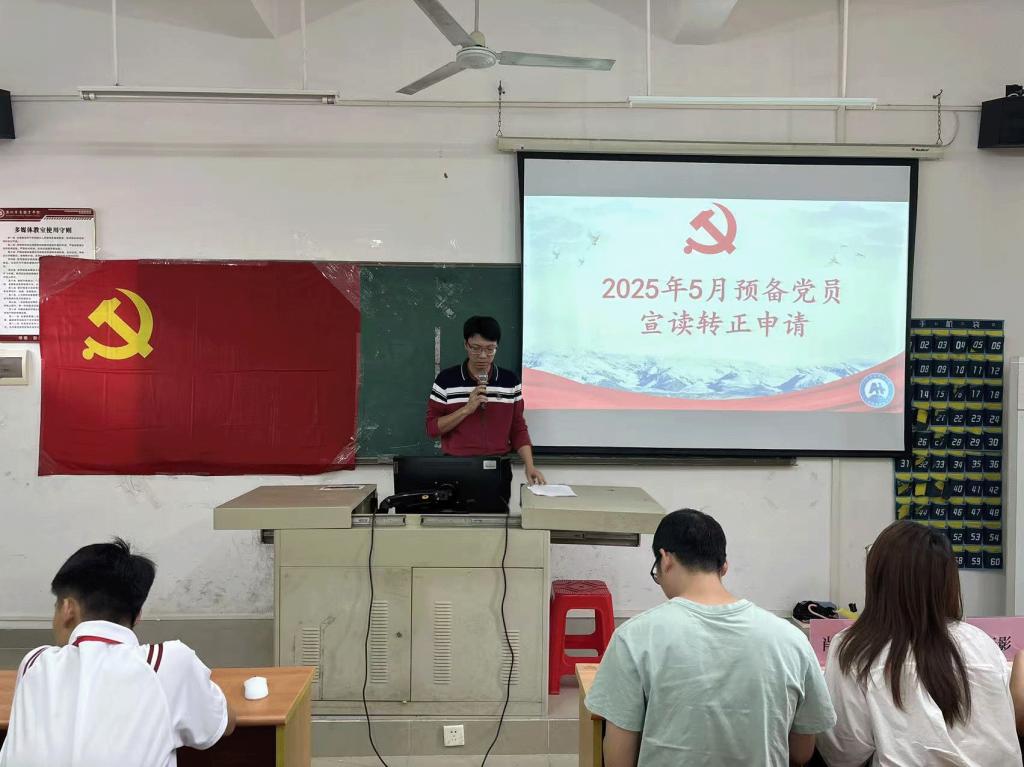 为进一步加强基层党组织建设,增强党组织的凝聚力与战斗力,人工智能与数据学院教师党支部于2025年5月30日中午在博学楼B406召开转正大会。参与此次会议的人员有教师党支部书记尹旭熙同志、组织委员生沙沙同志、宣传委员肖健南同志及全体教师党员。 会上,预备党员王道宽同志上台宣读转正申请书,接着,入党介绍人依次对王道宽同志的预备期表现发表转正审查意见。随后,在场的正式党员通过无记名投票的方式对预备党员进行投票。选票经过工作人员的收回与统票后,经党支部集体讨论,决定同意预备党员王道宽同志如期转为中共正式党员。 尹旭熙同志总结指出,转正既是荣誉更是责任,身份的转变意味着更高的标准、更重的使命。作为新时代高校教师党员,要始终牢记为党育人、为国育才的初心使命,不断加强思想政治建设,在教书育人的征程中践行对党的忠诚。 通过此次会议,进一步规范了党组织发展党员工作流程,希望全体党员同志始终保持党员的先进性和纯洁性,将初心使命内化于心、外化于行,在教育教学岗位上勇挑重担、砥砺前行,为学院高质量发展、为培养德智体美劳全面发展的社会主义建设者和接班人、为实现中华民族伟大复兴的中国梦贡献坚实的教育力量。
