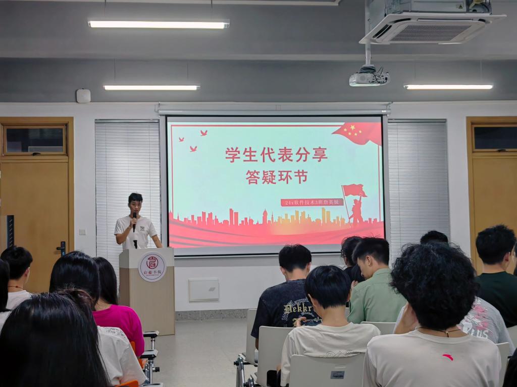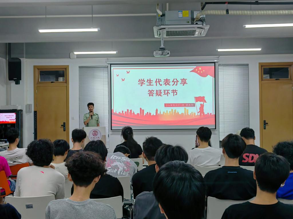 退伍学生詹英锐分享了参军入伍的心路历程与宝贵收获,从初入军营的青涩懵懂,到在摸爬滚打中淬炼出钢铁意志;从思想认知的蜕变升华,到身体素质与精神境界的全方位提升,每一个成长细节都生动诠释了军旅生涯的非凡意义。他的讲述让同学们切实感受到了参军的意义,激发了内心深处的爱国热情。