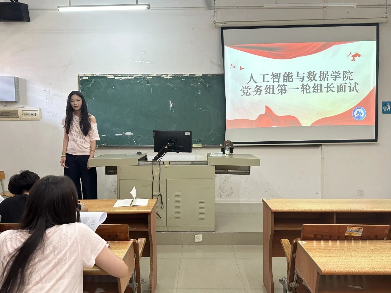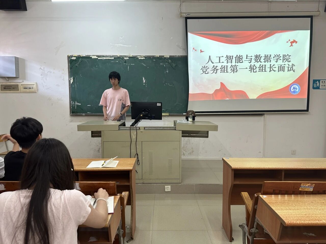 为进一步加强我院党建工作队伍建设,推动党务工作高效有序开展,人工智能与数据学院党务组于6月25日在博学楼C406开展第一轮党务组组长面试。