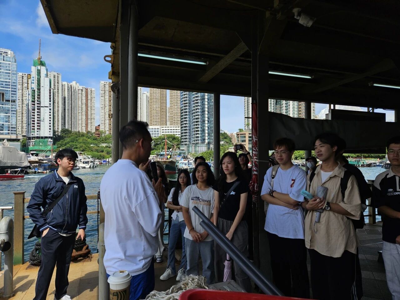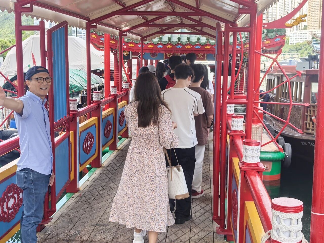 次日清晨,同学们前往太白和数码港。这里既有拥有60余年历史的香港太白码头,与著名的太白海鲜舫毗邻而居,修缮后成为热门打卡地。大家乘坐复古观光船穿梭避风塘,探寻水上人文化;漫步市集,感受科技与传统的奇妙交融,在旅程中收获知识与难忘回忆。