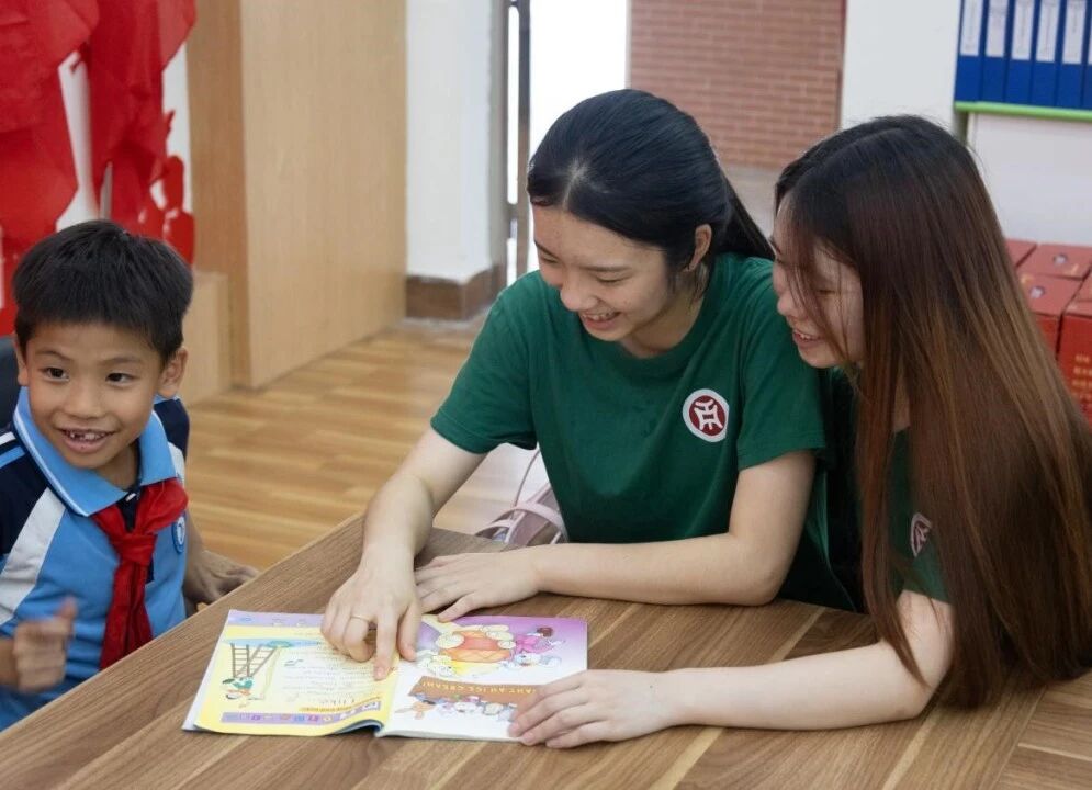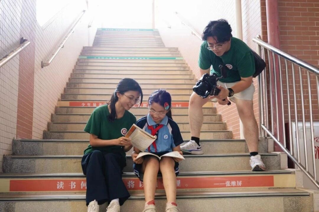 教室里,队员们变身“学习伙伴”,俯身为孩子讲解难题,作业本上的勾勾画画,是知识的传递,更是耐心与温度的交融。楼梯间的阳光正好,队员与孩子坐在一起,共读一本书。一旁的伙伴用镜头记录,将这份宁静又美好的画面留存,知识的桥梁,就在这轻声细语中,从故事的一端延伸向远方,连接起童真与成长的两岸。