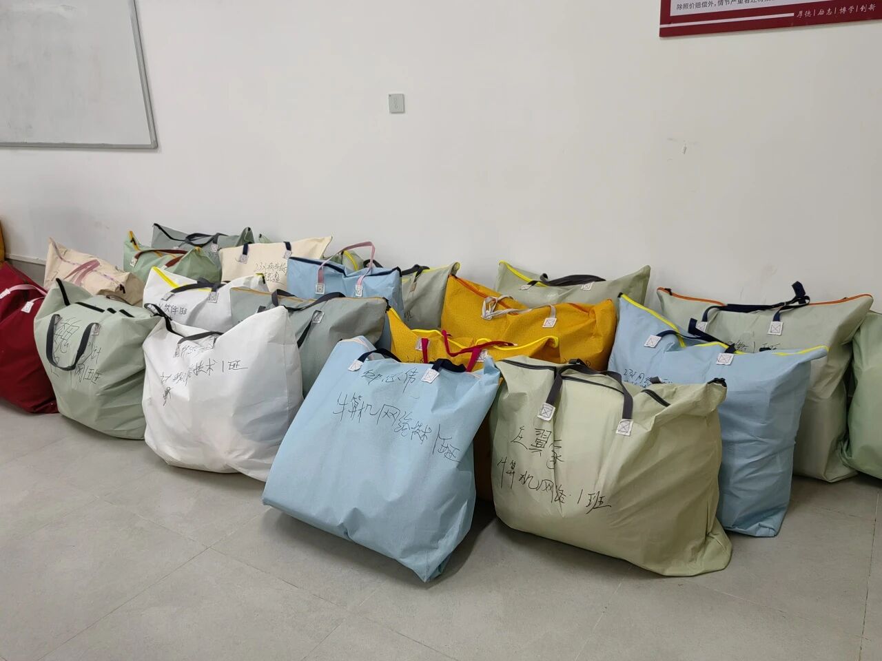 活动现场,志愿者们提前到岗、迅速分工,协助学生核对行李信息、登记签名、分类整理,细致引导同学按班级指定课室有序摆放。面对行李较多、人员流动频繁等实际情况,志愿者始终保持高度专注,耐心引导、及时沟通,确保信息无误、现场整齐。每件行李在写好姓名、班级和电话号码等信息后,整齐摆放在对应教室,做到“人走物清、责任到人”。