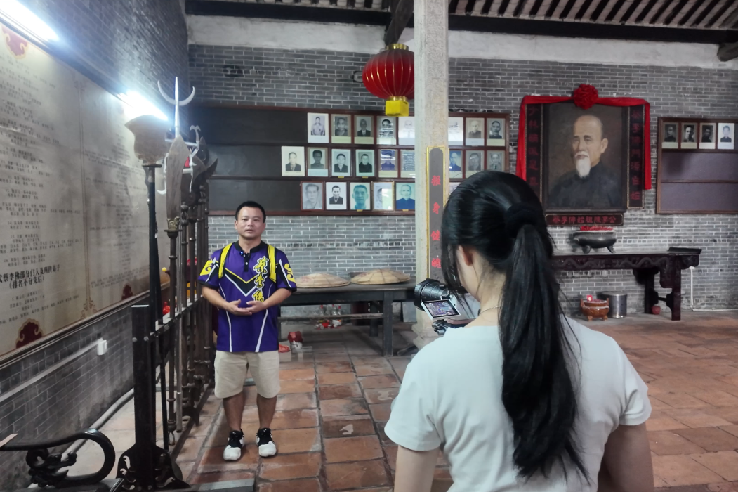 待蔡李佛始祖拳会李杰和师傅抵达现场后,突击队成员即刻按照既定方案投入工作,在 “百千万工程” 文化传承行动的框架下有序推进各项任务。由邓嘉欣、黄嘉帆、陆子俊、许凯欣四位成员组建的采访小组率先开展工作,他们围绕蔡李佛文化传承脉络、师傅投身蔡李佛艺术领域的生涯历程、乡村蔡李佛文化保护的实践经验,以及对依托蔡李佛文化推动乡土文化传承的深度思考等核心议题,展开了一场专业且深入的专题访谈。每一个精心构思的问题,都紧密关联着 “百千万工程” 中文化赋能乡村建设这一关键环节,力求通过与师傅的交流,深入挖掘蔡李佛文化在乡村扎根、发展的宝贵经验。