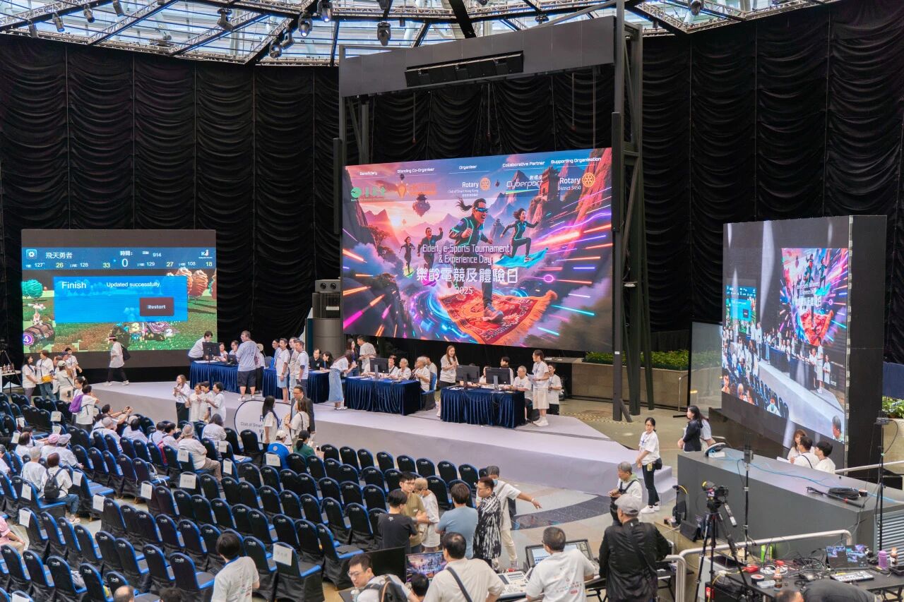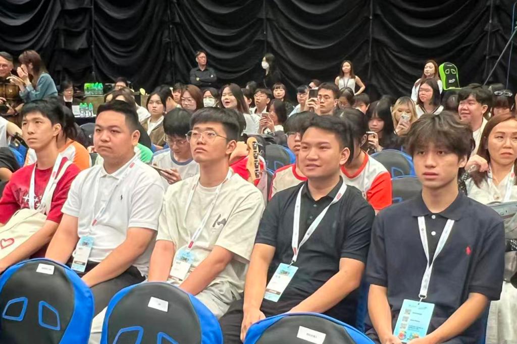 数码港商场中庭的乐龄电竞锦标赛现场,银发群体们在工作人员的帮助下调试 AI 辅助操作设备,在工作人员耐心指导中理解 AI 在降低科技使用门槛、服务多元人群中的价值;“闪避球 MR” 电竞比赛中,同学们佩戴 VR 设备组队竞技,在虚拟与现实的联动中,感受 AI 在电竞领域的沉浸式应用。