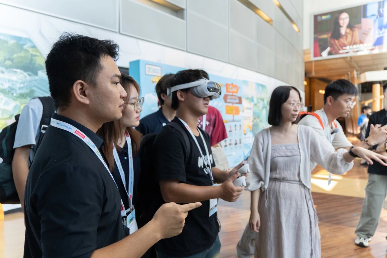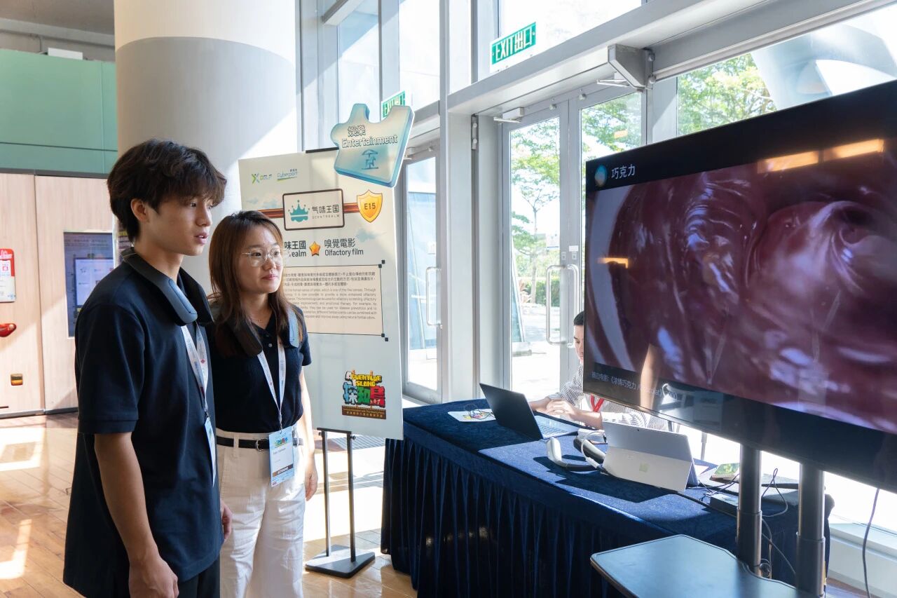 主舞台的 AI 艺术音乐会,通过 AIGC-MV 与乐队现场演奏的联动,展现 AI 在艺术创作中的创新价值;气味模拟设备体验展台前,同学们佩戴设备,随着屏幕场景切换,先后闻到森林草木香、浓郁巧克力香等气味,直观体会 AI 在多感官模拟领域的突破。
