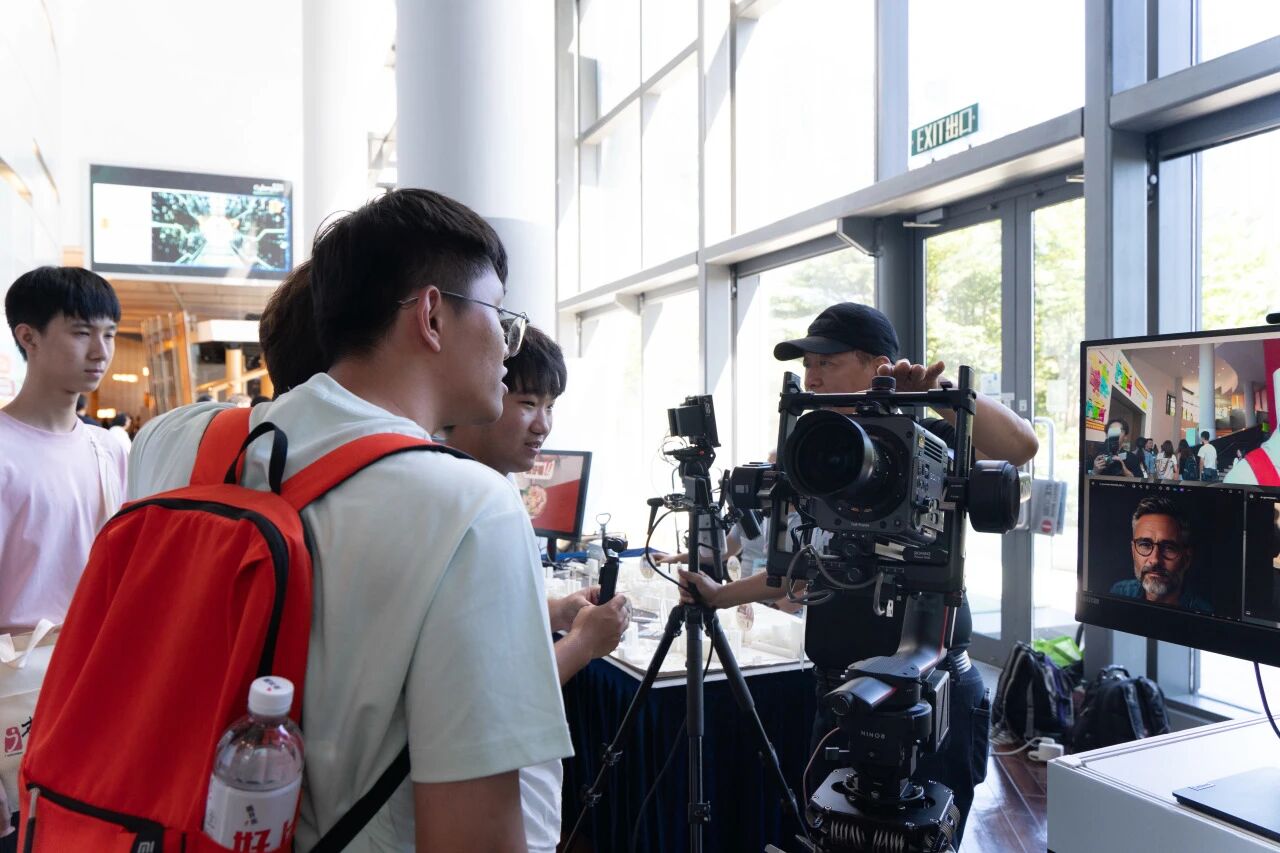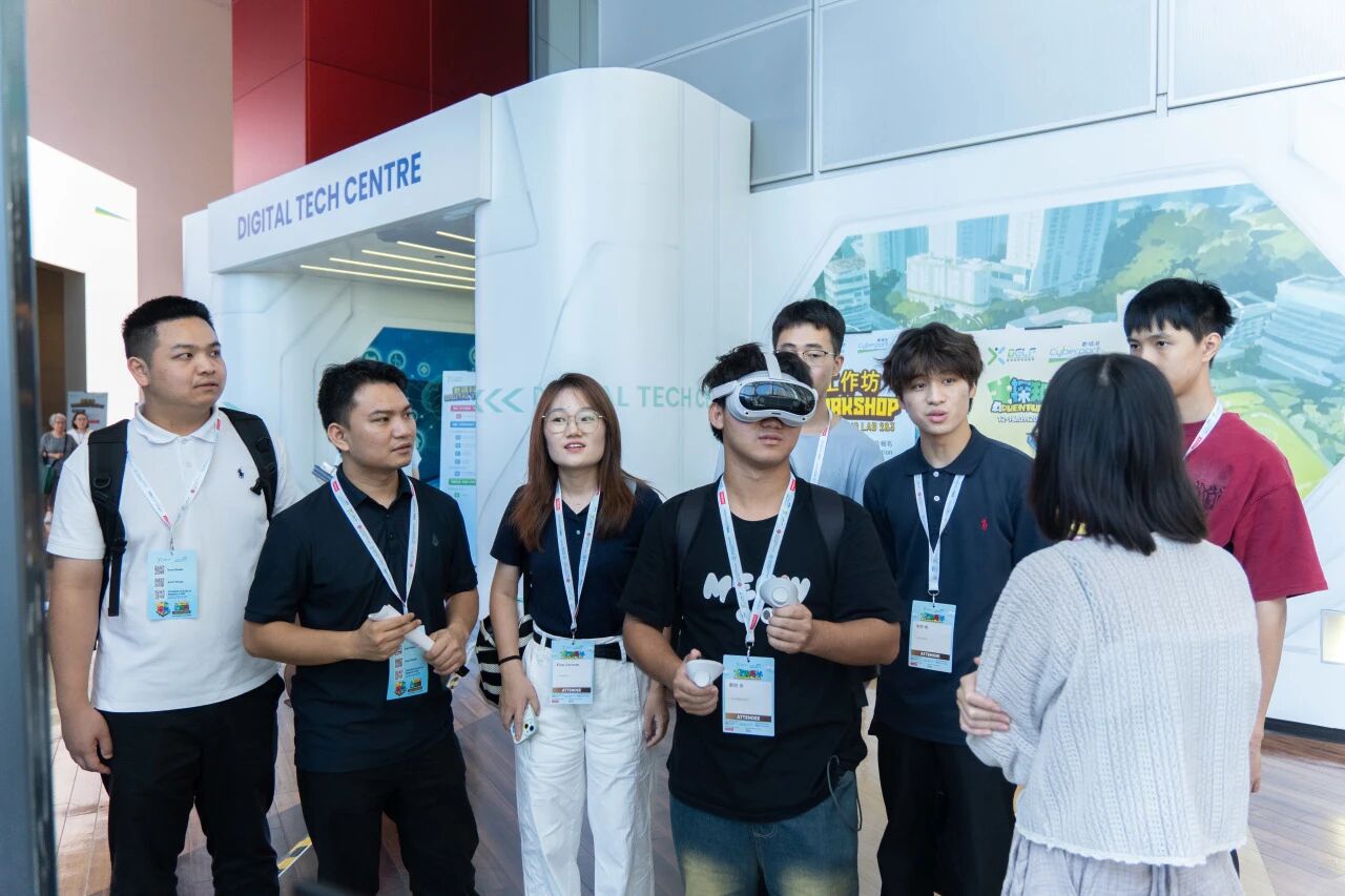 首日抵达香港数码港,同学们有序完成签到后,开启了沉浸式研学实践。活动围绕 “人工智能赋能文创发展” 展开,既有‘触摸 AI 文创应用实景’的沉浸式体验,也有‘深挖 AI + 文创融合逻辑’的深度专业交流”。