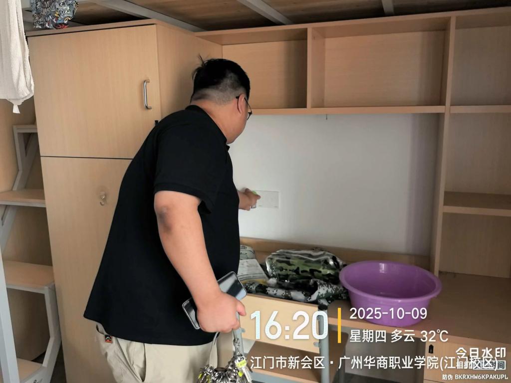 为贯彻落实《关于严格落实“两热”疫情防控工作及爱国卫生运动的通知》,进一步加强学生宿舍管理,切实保障同学们的健康与安全,10月9日,江门校区人工智能与数据学院组织开展了宿舍检查工作。
