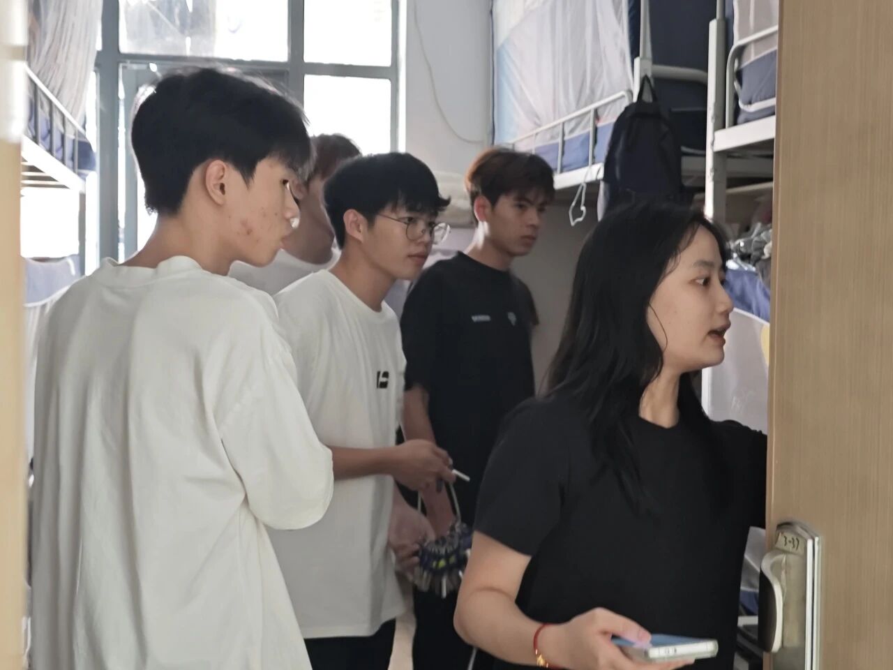 检查过程中,老师与学生们对宿舍环境卫生、积水死角、绿植养护等情况进行了逐一排查,并对违禁品、水电安全等方面严格检查,及时发现和消除潜在风险。