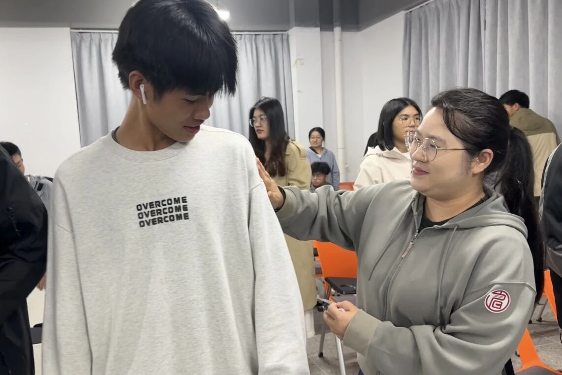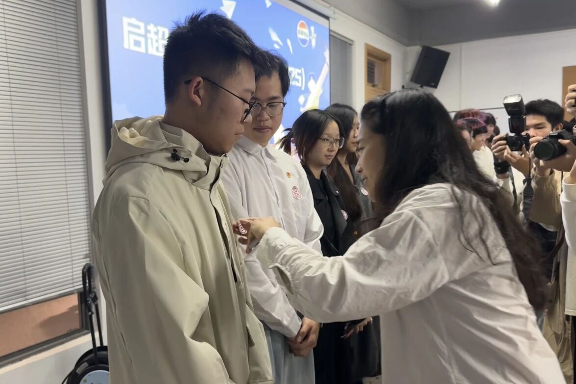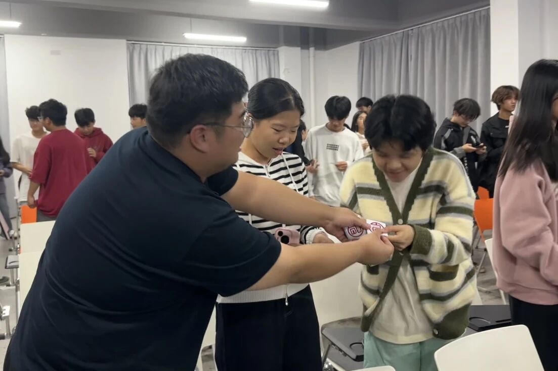 仪式的重要环节——颁发书院徽章随之展开。陈浩华、张蒙莉等书院导师、各辅导员及助班代表依次为新生佩戴书院徽章。最后,全体出席人员在书院门前合影留念。镜头定格下一张张青春洋溢的脸庞,也为本次新生入院仪式画上了圆满的句号。