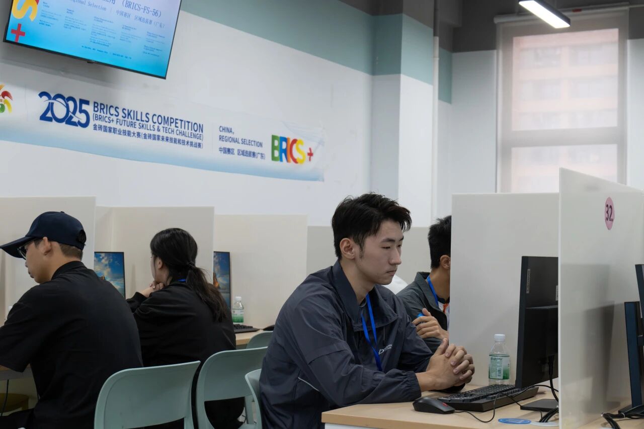 秋高气爽,战鼓催征。10月25日至26日,2025金砖国家职业技能大赛——人工智能技术应用赛项中国赛区选拔赛(广东)在我校创科楼隆重举行。本次赛事吸引了来自广东省内的37支参赛队伍同台竞技,共赴一场智慧与技能的较量。